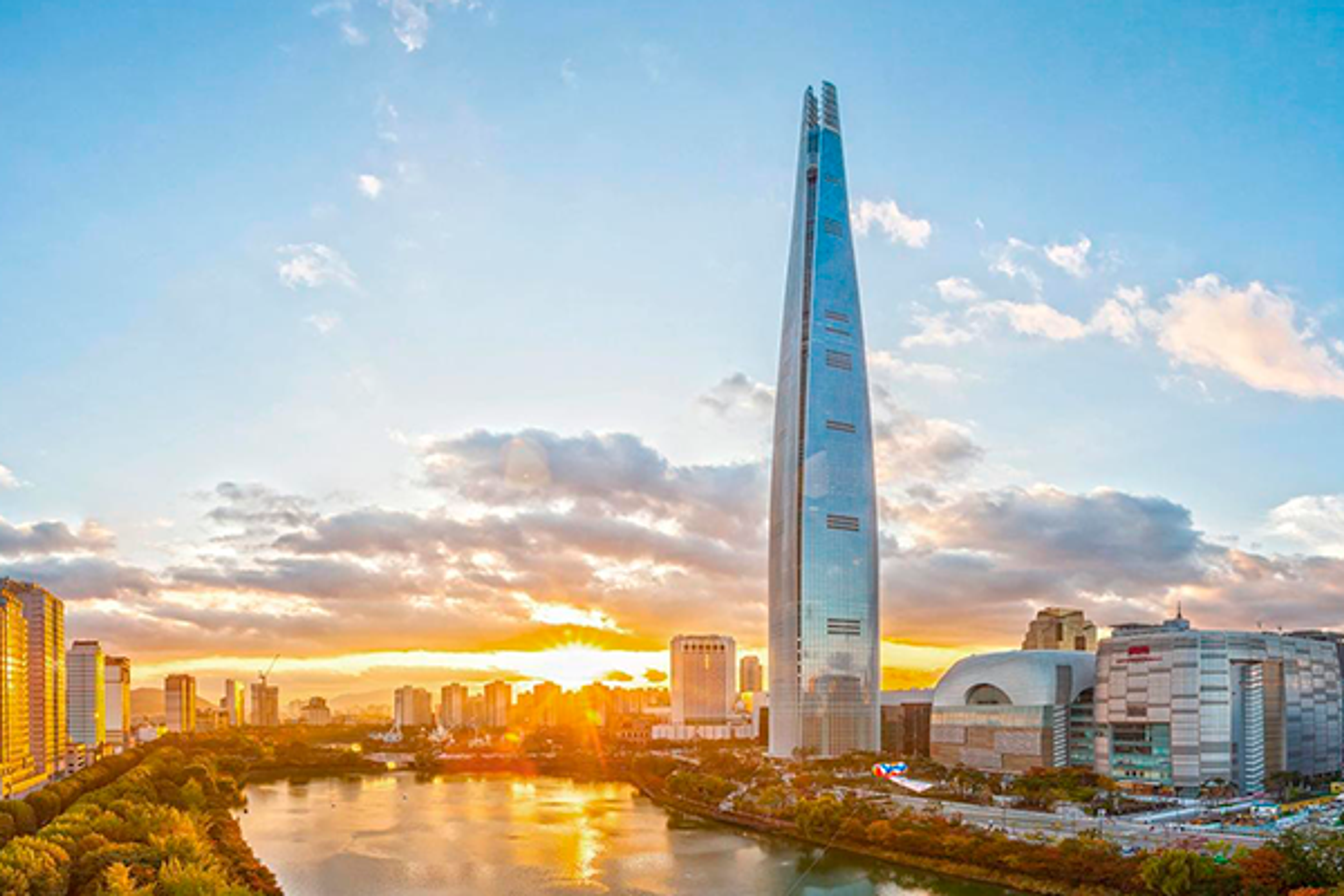 O arranha céu de 123 andares, com 555 metros de altura, conhecido como Lotte World Tower é oficialmente a quinta torre mais alta do mundo. Executada pelo escritório Kohn Pedersen Fox Associates (KPF), a torre se baseia nas formas de cerâmica e caligrafia tradicionais coreanas, que se erguem em um perfil liso e cônico que contrasta com a topografia montanhosa da cidade. No interior, o prédio abriga luxuosos hotéis de Seul, um “officetel” e espaços para negócios e comércios da região. Após sua construção final, o arranha-céu se tornou o maior edifício da península coreana, um título que anteriormente era detido pelo Ryugyong Hotel em Pyongyang, na Coreia do Norte.